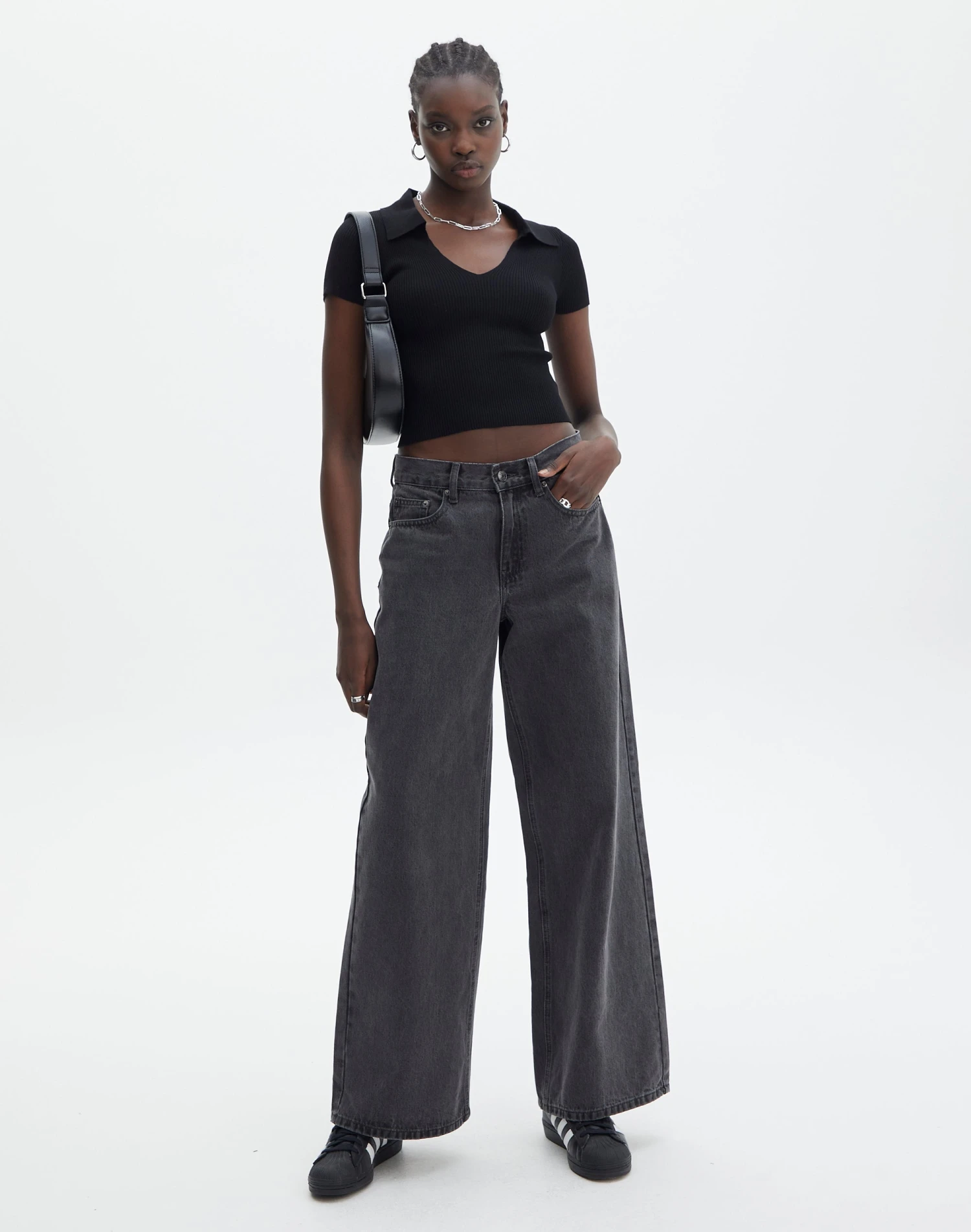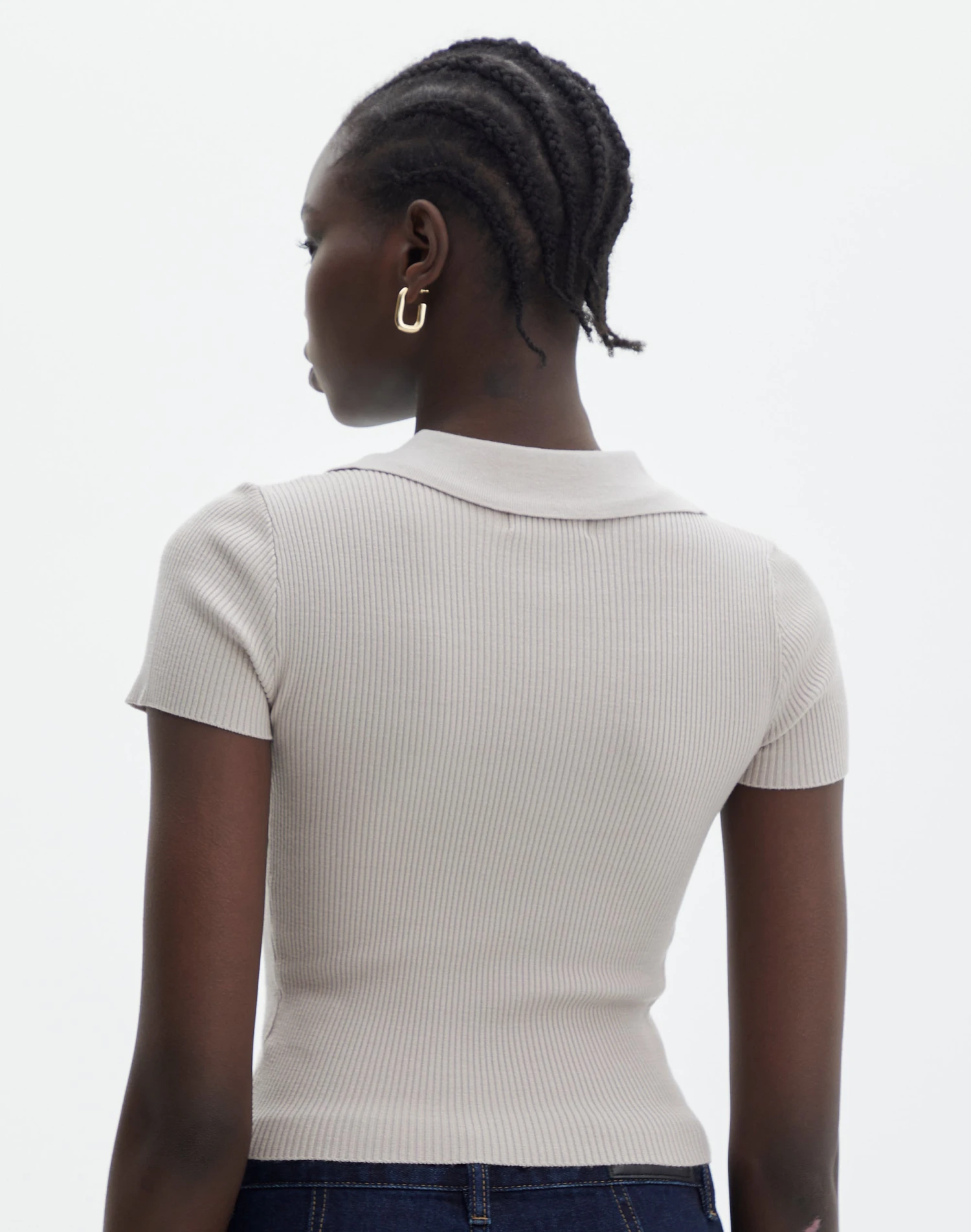Collared Ribbed Knit Crop Top